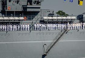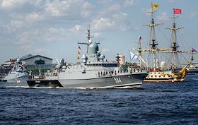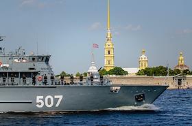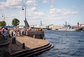 Репетиция парада в честь Дня ВМФ на Дворцовой набережной.