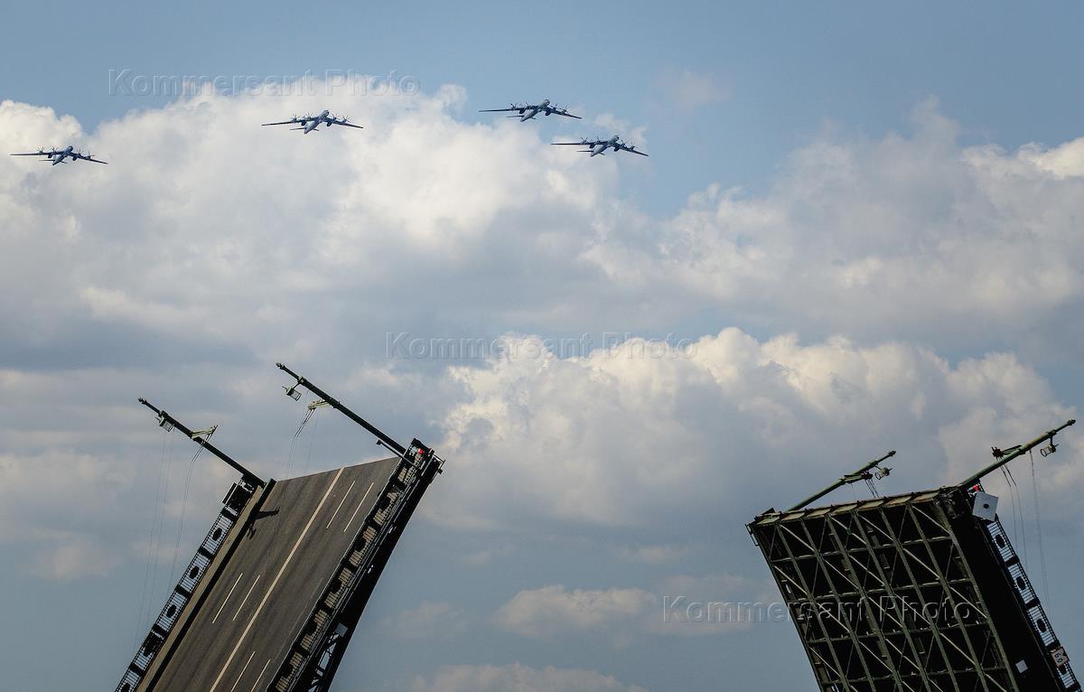 Репетиция парада в честь Дня ВМФ на Дворцовой набережной.