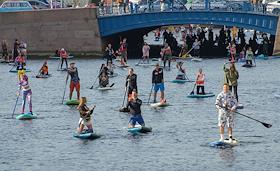 Набережная реки мойки, закрытие сезона сапсерферов.