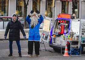 Жанровая съемка. Люди в масках на улицах Санкт-Петербурга.