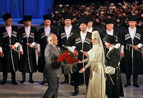 Церемония вступления в должность главы Северной Осетии Таймураза Мамсурова, во Владикавказе.