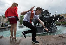 Празднования "Последнего звонка" в Москве. Гулянья выпускников средних школ на Красной Площади.