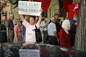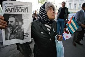 Митинг, приуроченный к дню рождения президента Кубы Фиделя Кастро, прошел у посольства Кубы.