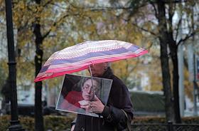 Митинг памяти специального корреспондента "Новой газеты" А.Политковской в Новопушкинском сквере.