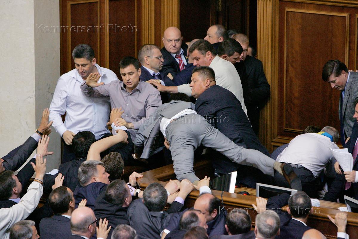 Заседание Верховной рады Украины (ВРУ). Блокирование депутатами оппозиции. Драка. Митинг под зданием…