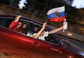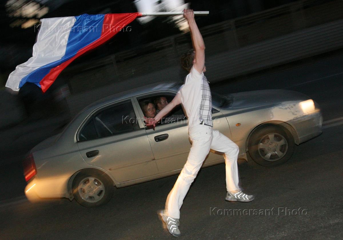 Празднование победы сборной России над сборной Голландии на Чемпионате Европы по футболу 2008 в…