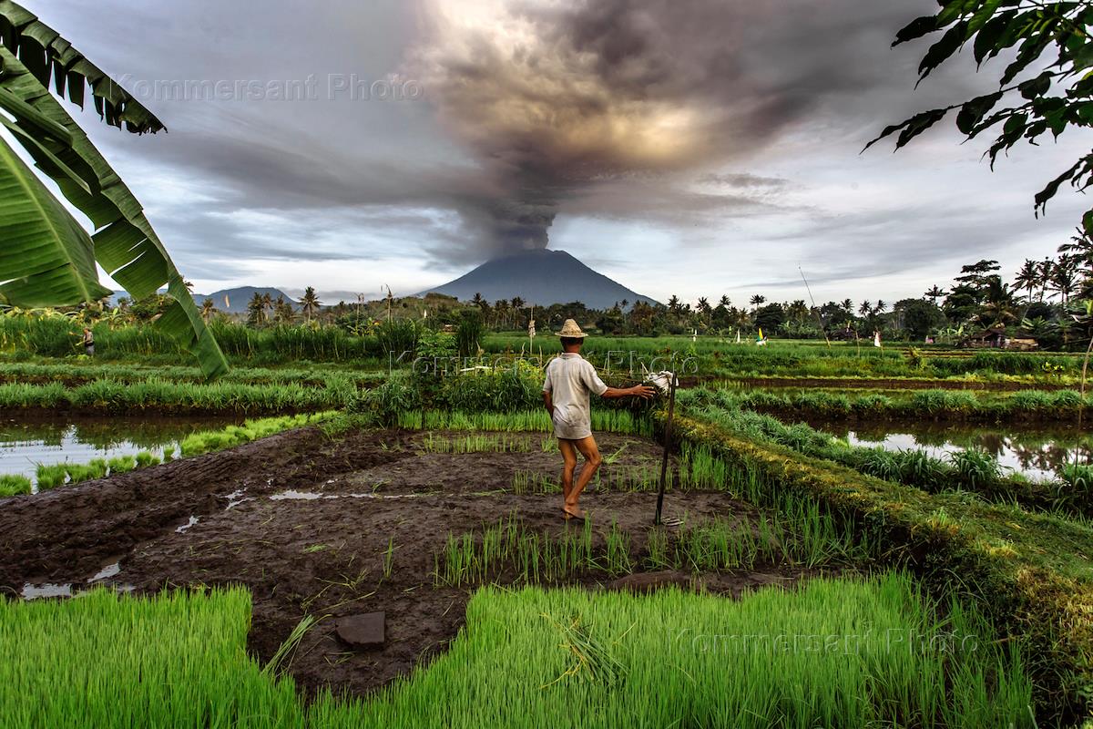 Извержение вулкана Агунг на острове Бали.