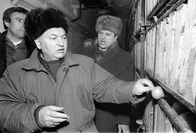 Мэр Москвы в метро? Мэр Москвы Юрий Лужков на плодоовощном складе резерва Правительства Москвы.