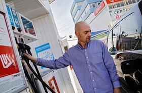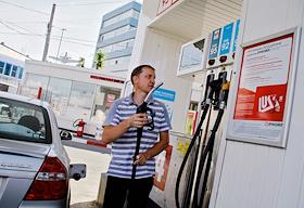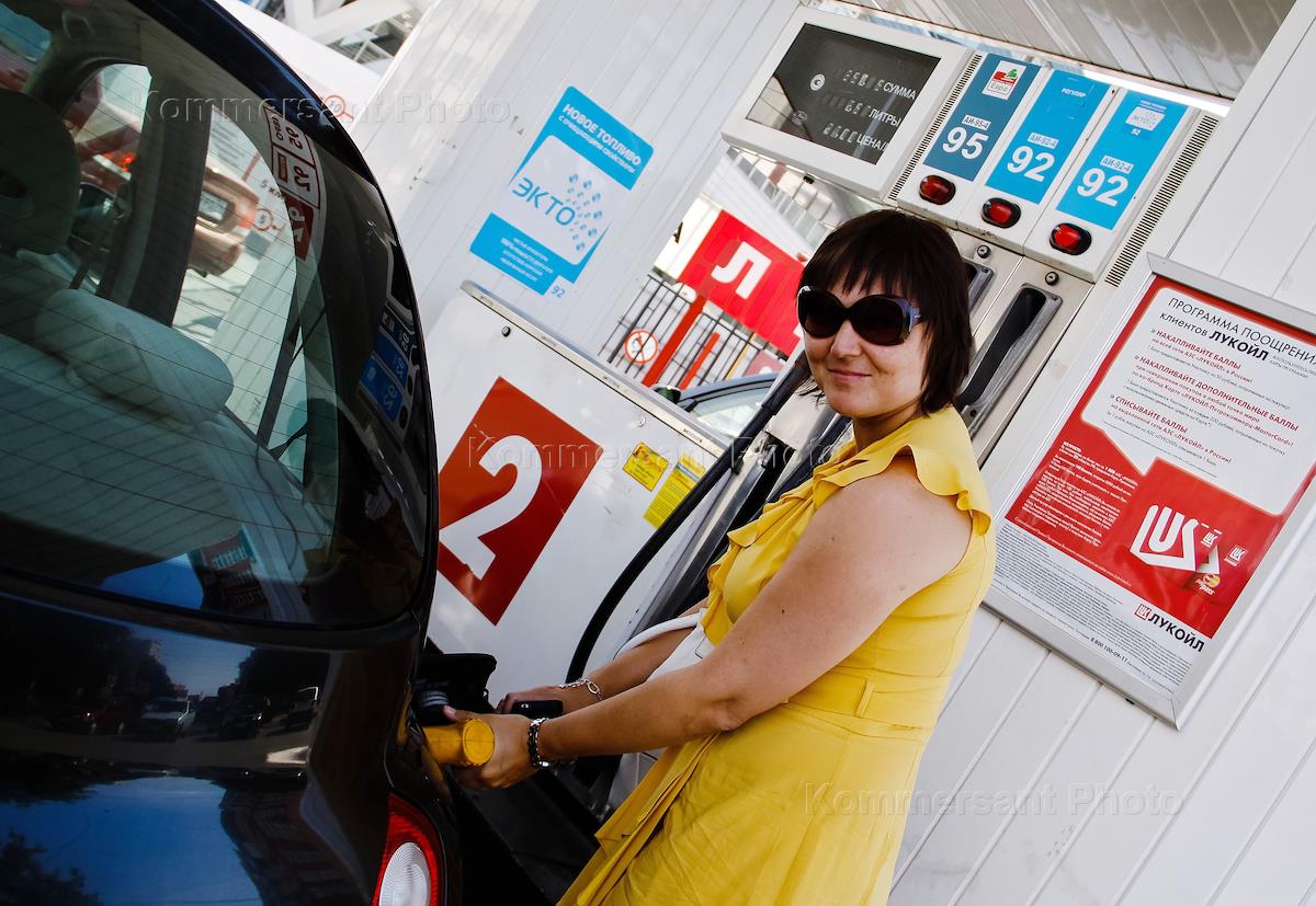 Жанровые фотографии. Челябинцы заправляют бензин на заправке Лукойл.