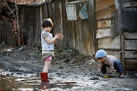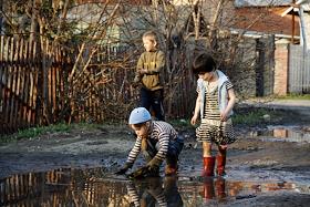 Дети играющие в грязи на окраине Новосибирска.