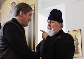 Губернатор Пермского края Дмитрий Махонин во время первой церковной службы в здании…
