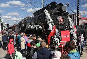 «Эшелон Победы» — поезд-музей Свердловской железной дороги, посвященный Дню Победы, на станции…