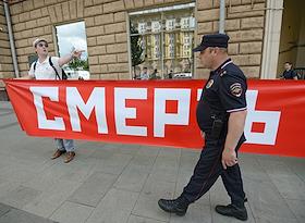 Встреча с избирателями депутатов фракций КПРФ в Госдуме и Мосгордуме напротив здания посольства США…