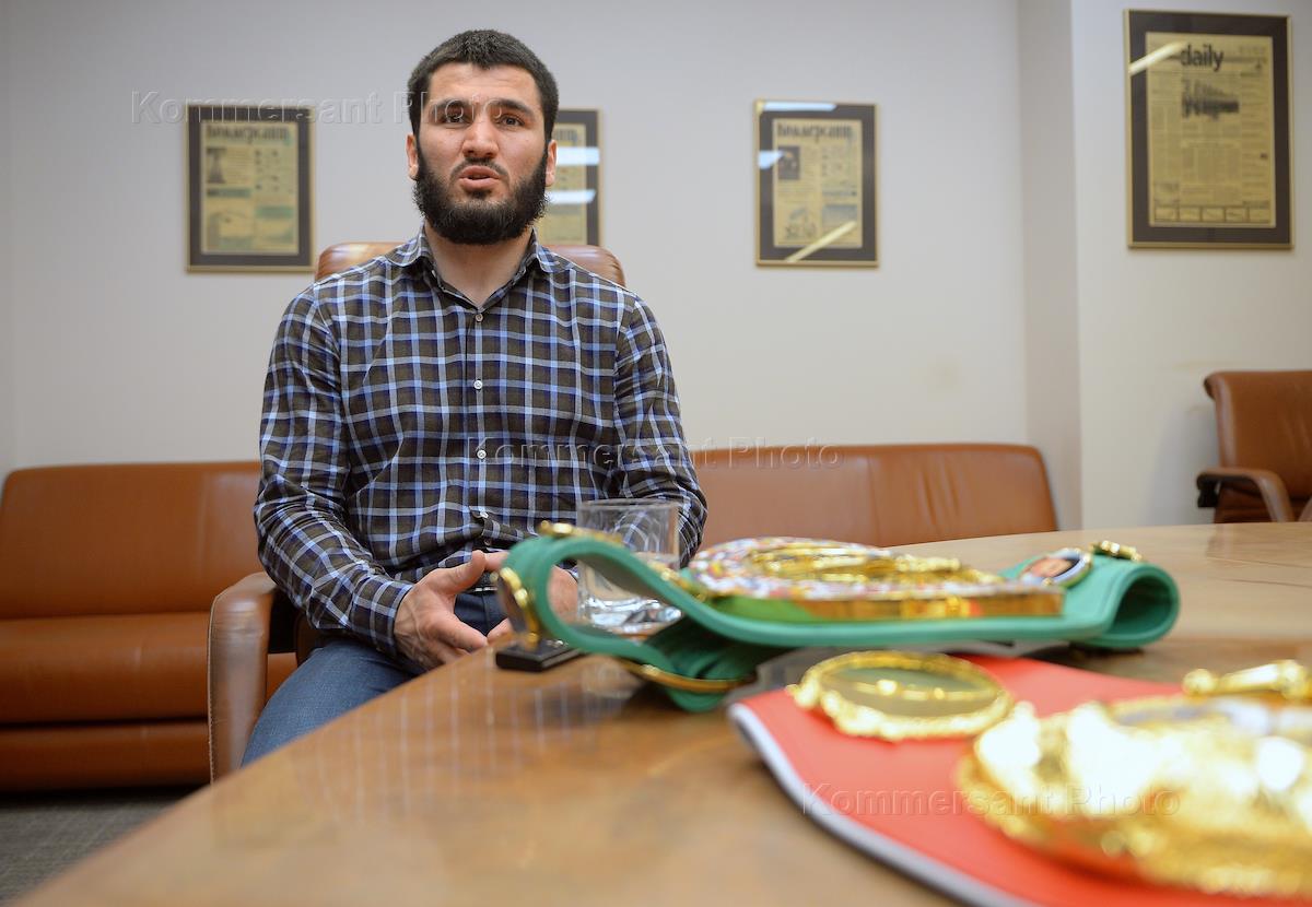 Боксер Артур Бетербиев во время интервью в редакции "Коммерсантъ".