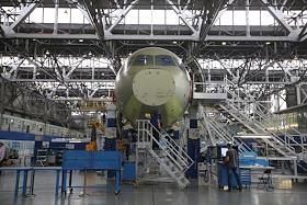 Сборка магистрального самолета МС-21 на авиационном заводе корпорации "Иркут"