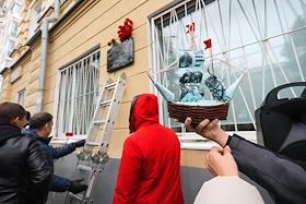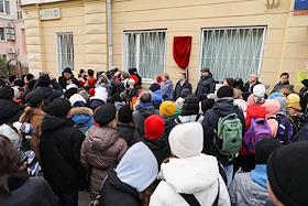 Торжественное открытие мемориальной доски на доме, где работал писатель Владислав Крапивин, в…