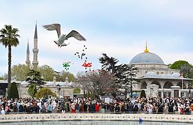 Праздничные мероприятия в день Ураза Байрам на площади Султанахмет у собора Святой Софии.