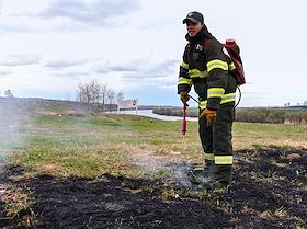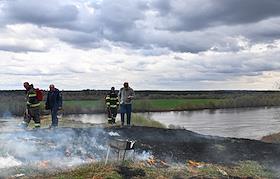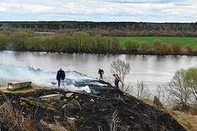 Возгорание сухой травы в районе Колычево, города Коломны, Московская область.