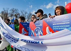 Торжественное шествие «Время России! Время вперед!» на ВДНХ, приуроченое ко дню Космонавтики.