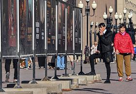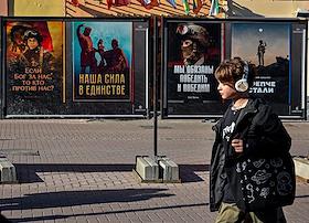 Серия плакатов на Старом Арбате, созданных художниками РИА «Армия России».