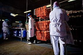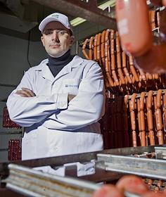 Управляющий директор мясокомбината "Окраина" Виталий Деледивка. Производственный процесс на…