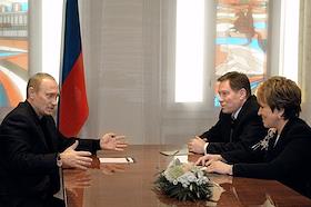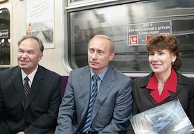 Владимир Путин, Валентина Матвиенко, Владимир Яковлев в аэропорту "Пулково"