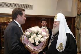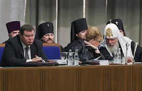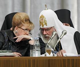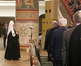 Торжества, посвященные 15-й годовщине патриаршей интронизации Алексия II, в зале церковных соборов…