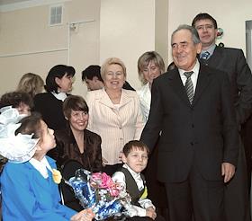 Президент Татарстана Минтимер Шаймиев в окружении молодых артистов во время торжественных…