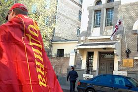 Молодежное крыло партии "Родина" устроило перед зданием посольства Грузии несанкционированный митинг.