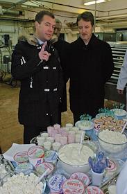 Первый вице-премьер, кадидат в президенты РФ Дмитрий Медведев посетил агропромышленное (молочное…