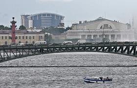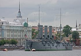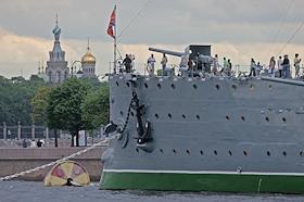 Крейсер "Аврора", вид от Литейного моста (катера,речные трамвайчики)