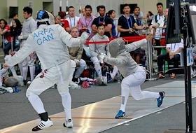 Чемпионат мира по фехтованию. Командный турнир. Германия(слева)-Россия(справа).
