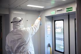 Комплекс противоэпидемических мероприятий в пригородных поездах в рамках пресс-тура организованного…