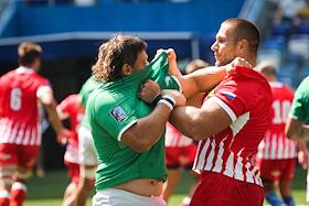 Матч Чемпионата Европы по регби между сборными России и Португалии.