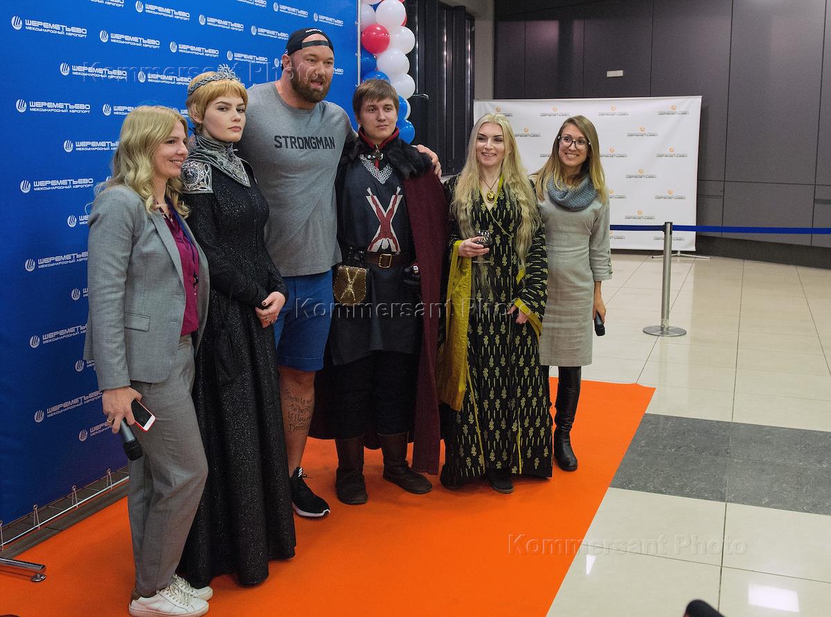 Актер сериала "Игра Престолов" Хафтор Бьёрнссон в терминале аэропорта Шереметьево.