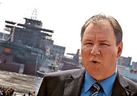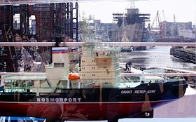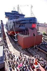 Спуск на воду ледокола "Санкт-Петербург" на Балтийском заводе.