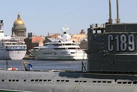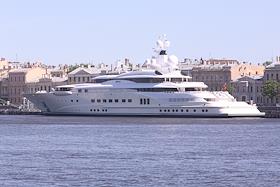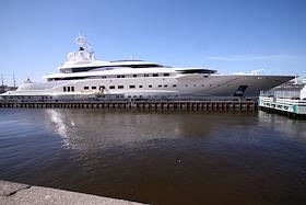 Яхта “Пелорус”, принадлежащая миллиардеру Роману Абрамовичу пришвартованнная у Английской набережной.