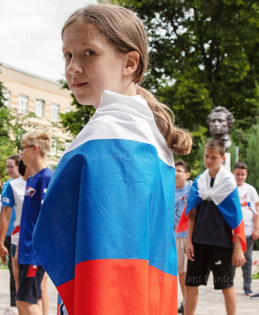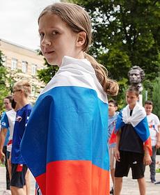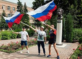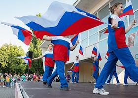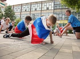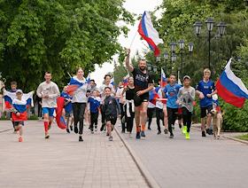 Массовый забег и спортивная зарядка в честь Дня России на Петровском бульваре в городе Азове.