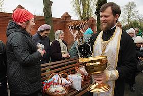 Утреннее богослужение в день Страстной субботы. Освящение пасхальных куличей в храме Святой Троицы…