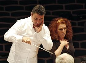 Максим Венгеров и оперная певица Лора Клейкомб (США) во время репетициии.
