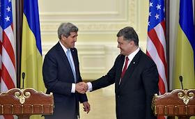 Президент Украины Петр Порошенко во время встречи с государственным секретарем США Джоном Керри, в…