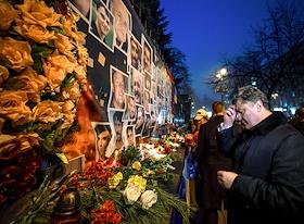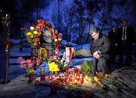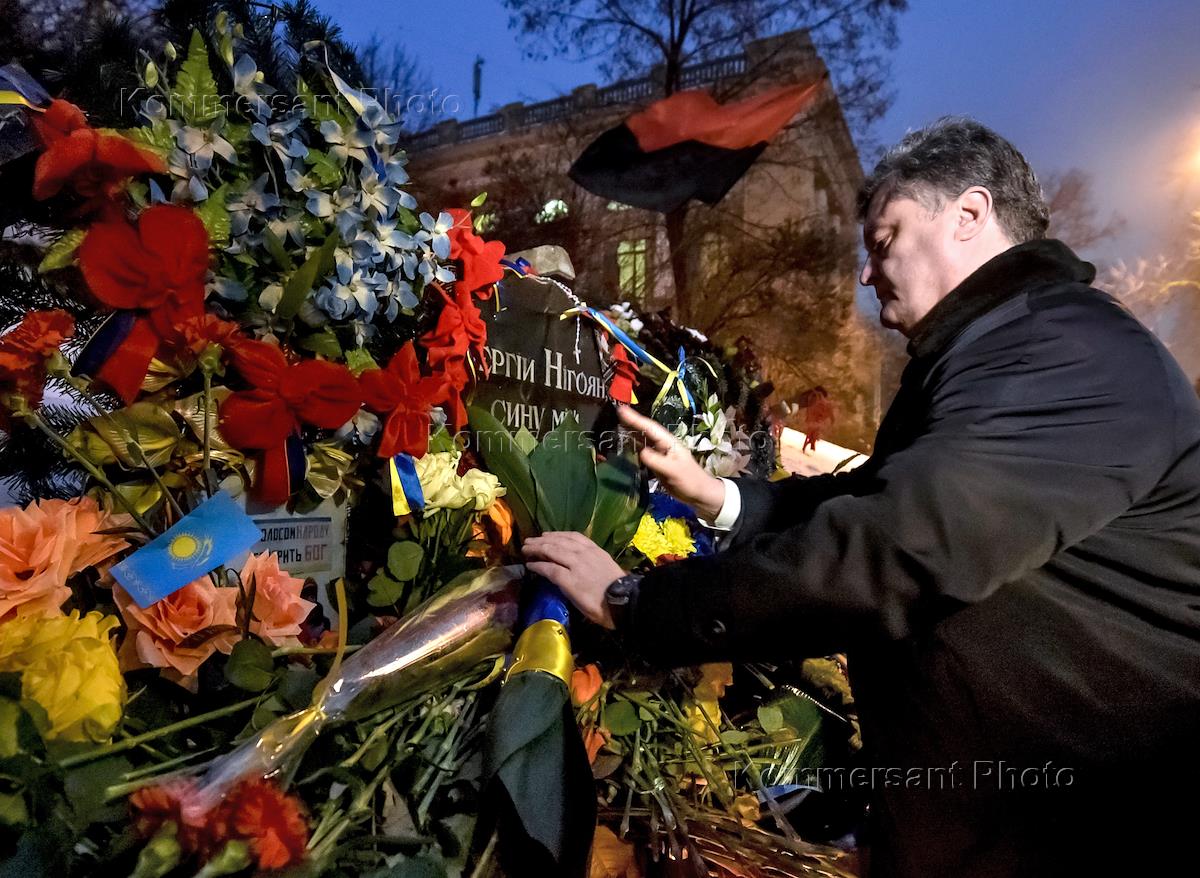 Президент Украины Петр Порошенко во время возложения цветов к памятным знакам Сергею Нигояну и…