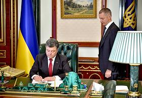 Президент Украины Петр Порошенко во время подписания Закона о люстрации.