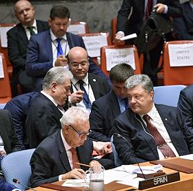 Президент Украины Петр Порошенко на заседании высокого уровня Совета Безопасности ООН по Сирии.