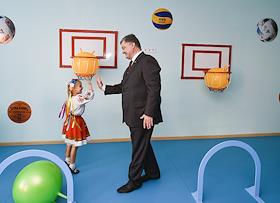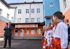 Президент Украины Петр Порошенко на церемонии открытия нового детского сада "Дивный" в селе…