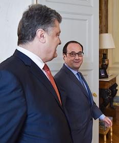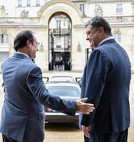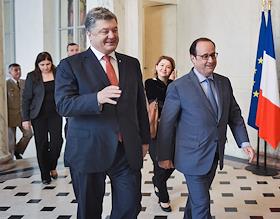 Президент Украины Петр Порошенко и президент Франции Франсуа Олланд во время встречи в Елисейском…