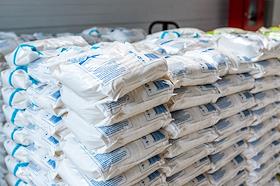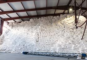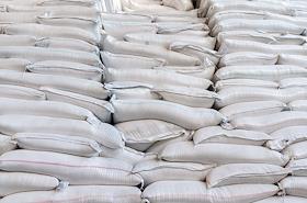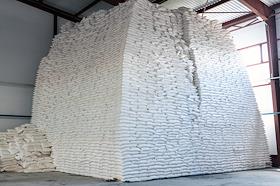 Сахар в мешках на складе Перелешинского сахарного завода.
