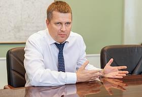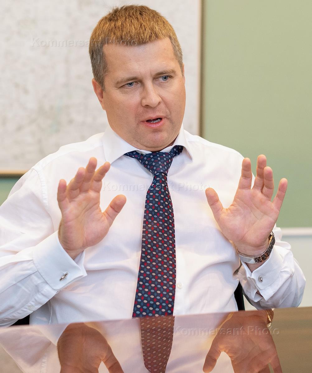 Председатель Липецкого областного Совета депутатов Дмитрий Аверов во время интервью в своем рабочем…