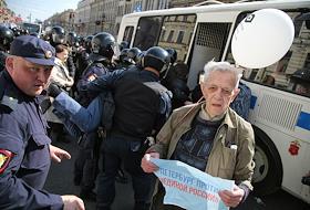 День Международной солидарности трудящихся. Первомайская демонстрация в Санкт-Петербурге.