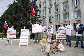 Пикет дольщиков и вкладчиков ООО "Россия" у здания правительства Амурской области.